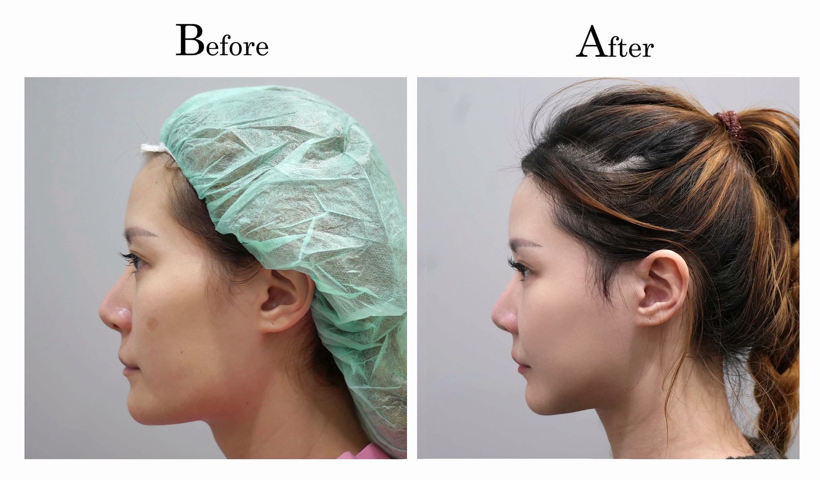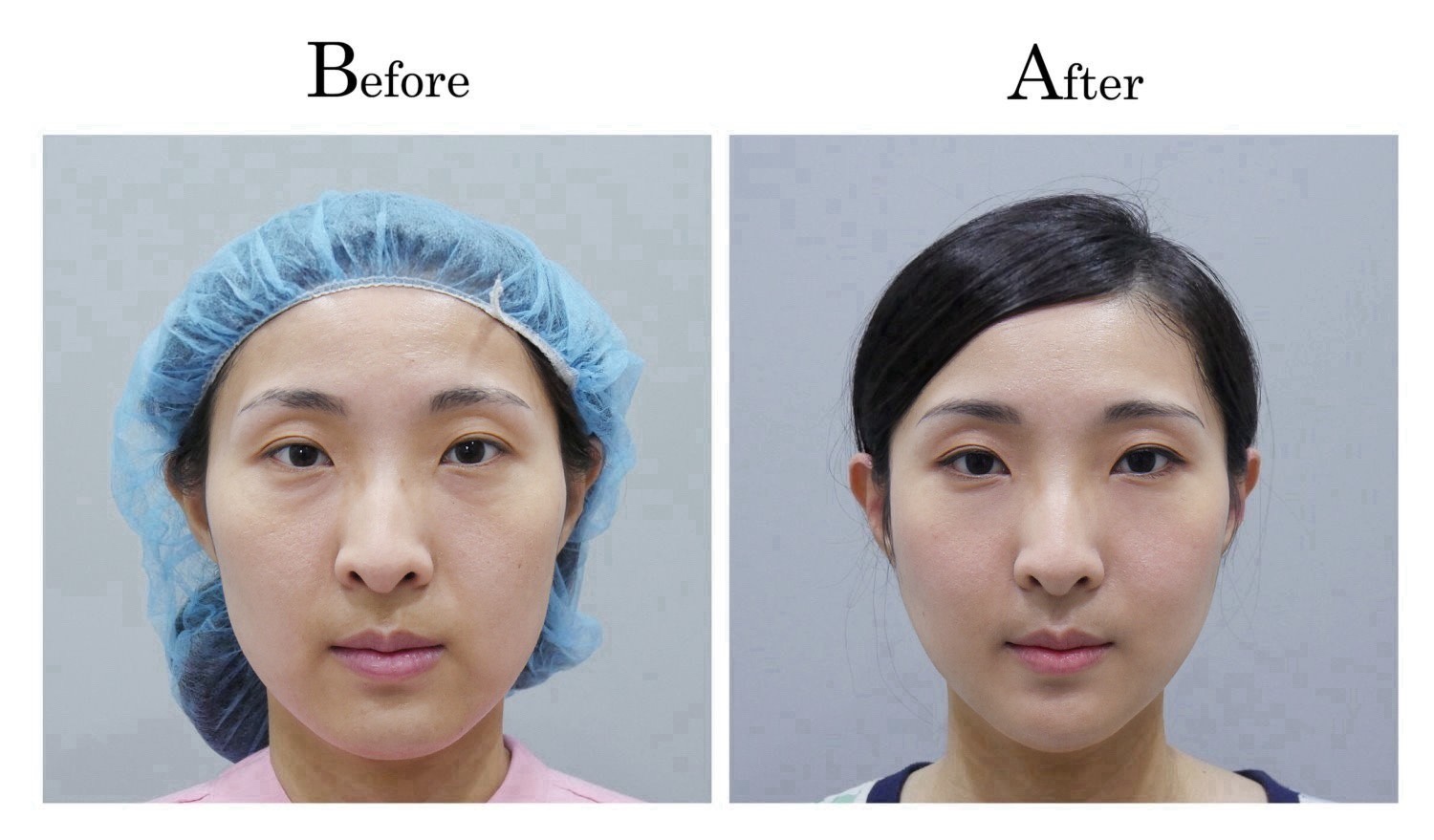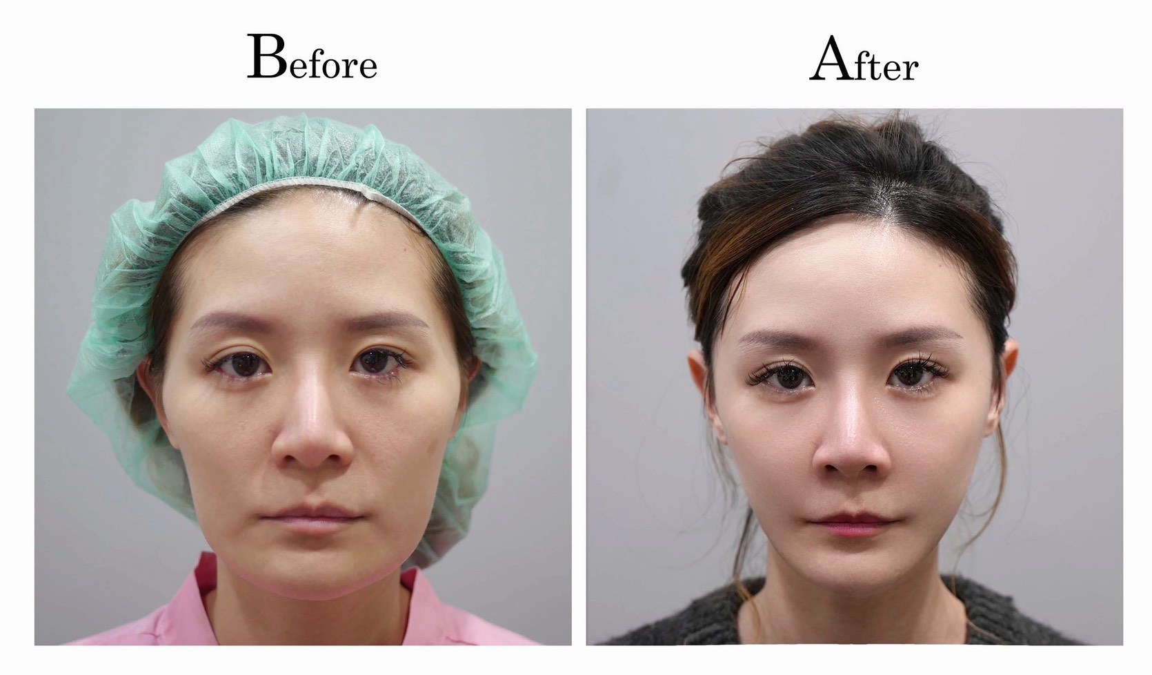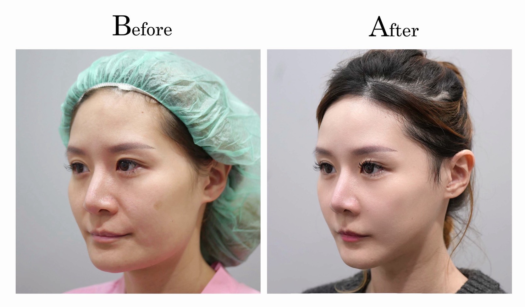 下臉的部分,一樣對照顴骨的部分作等比例的調整,比較特別的部分是下巴,原本的下巴正面感覺過長過寬,精緻度不構,利用截骨手術進行下巴的重新調整,改善後感覺精緻度提升不少。