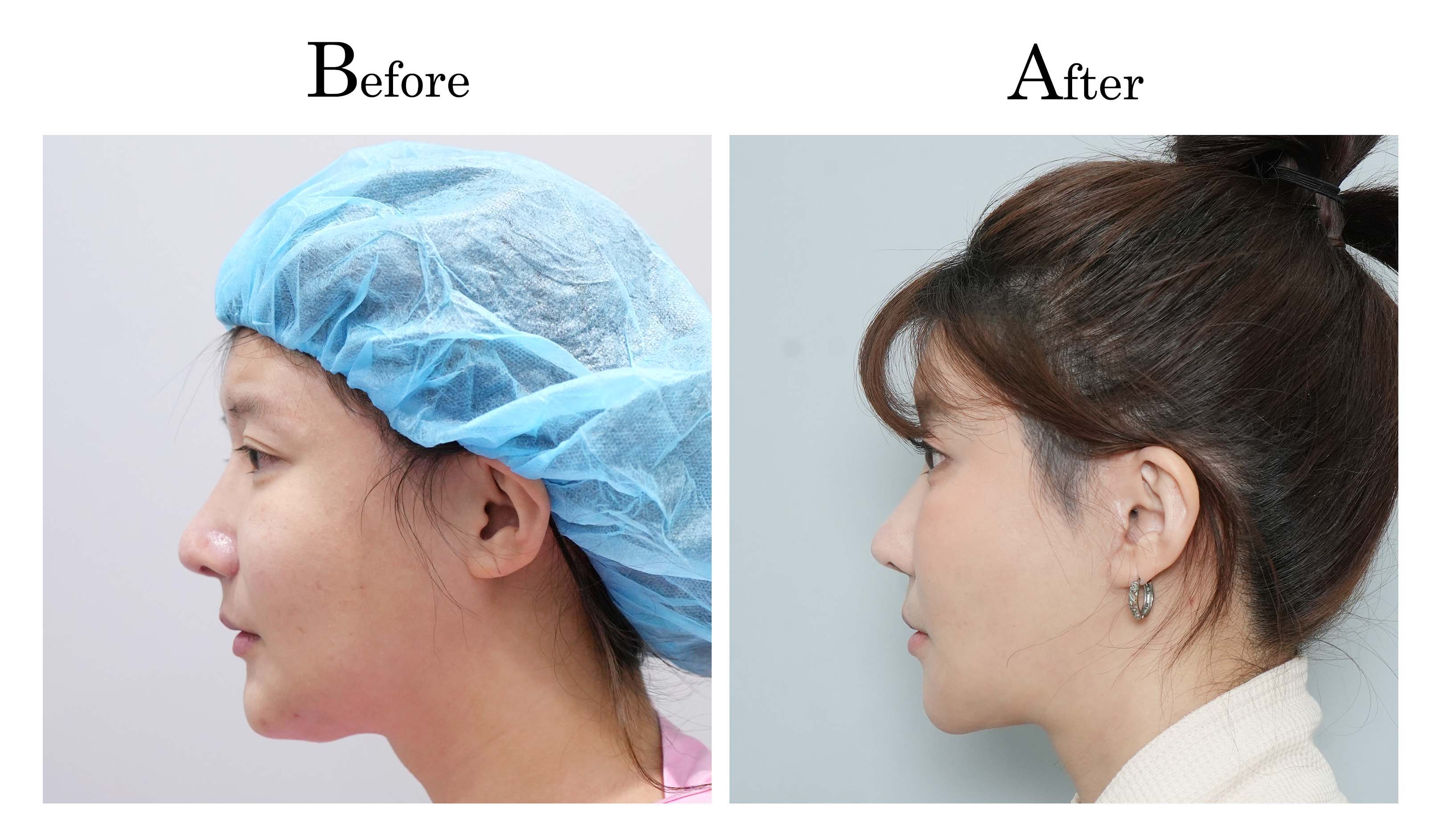 病患因為下臉鬆弛與合併些嬰兒肥的狀況,造成下臉部和下巴的輪廓線不順,透過下臉拉皮手術將臉部皮膚調整緊實,下巴和臉部的輪廓線也變得比較順,看起來感覺比較年輕。