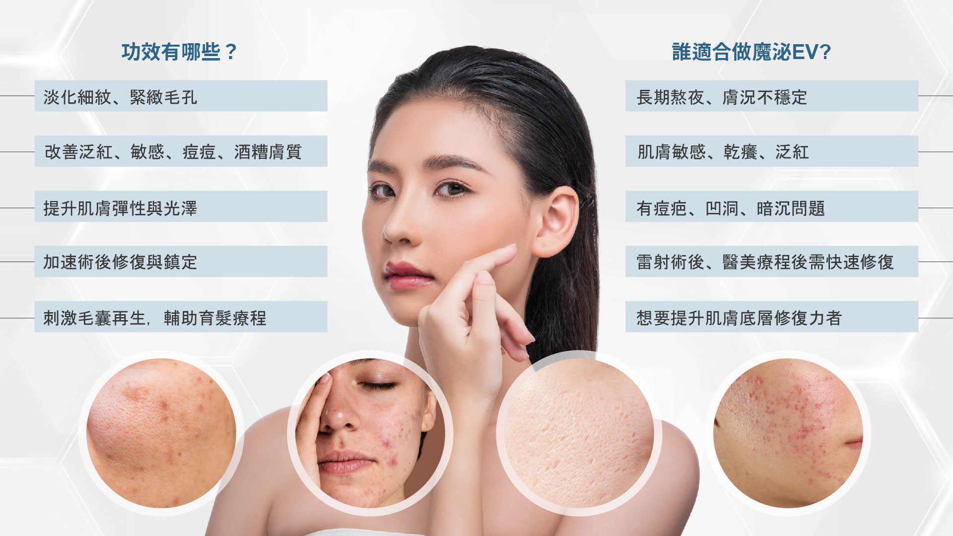 • 有痘疤、凹洞、暗沉問題